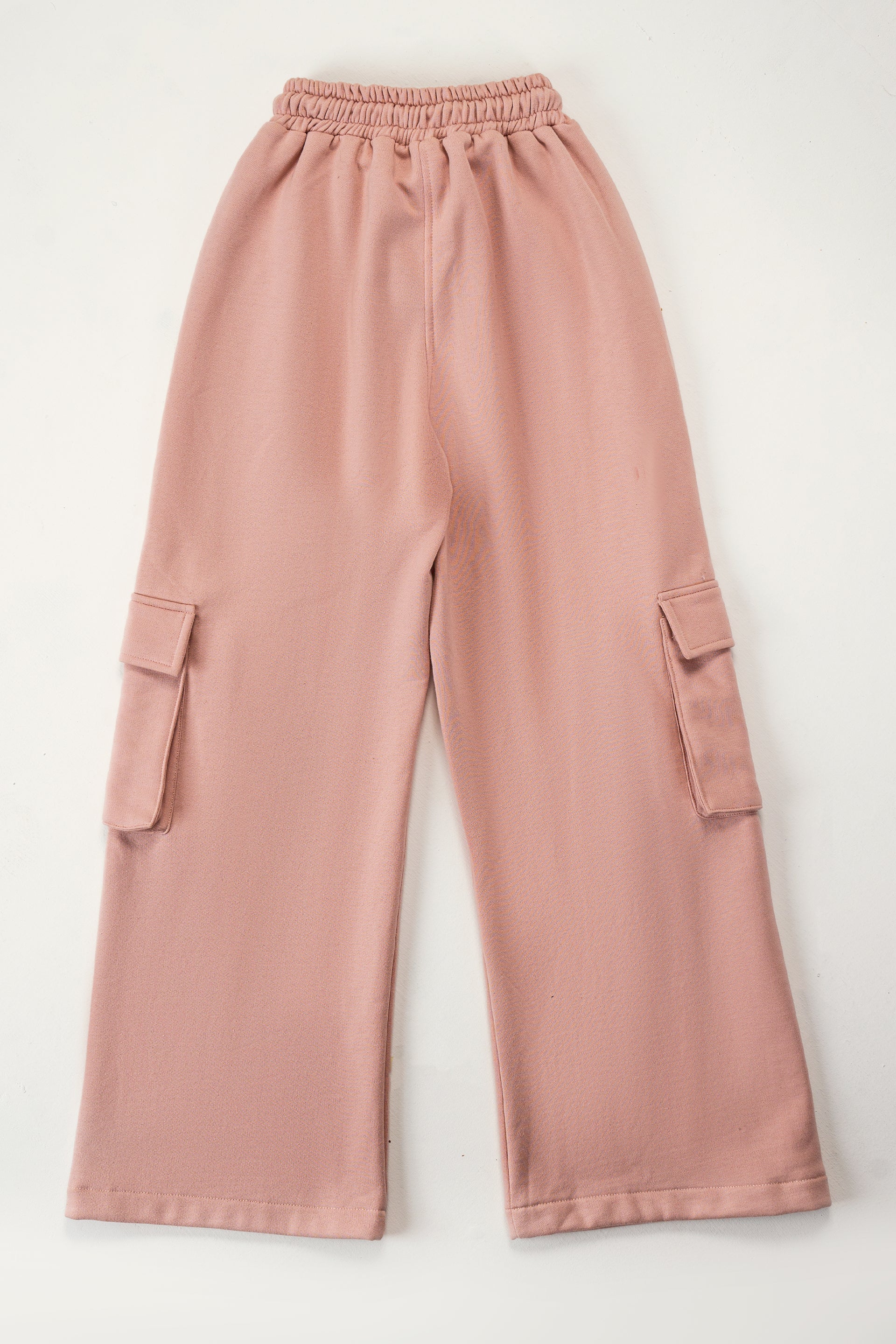 Description: These women's fleece cargo sweatpants offer cozy comfort and a relaxed fit, perfect for everyday wear. Featuring trendy cargo pockets and an elastic waistband, they're ideal for lounging or casual outings.