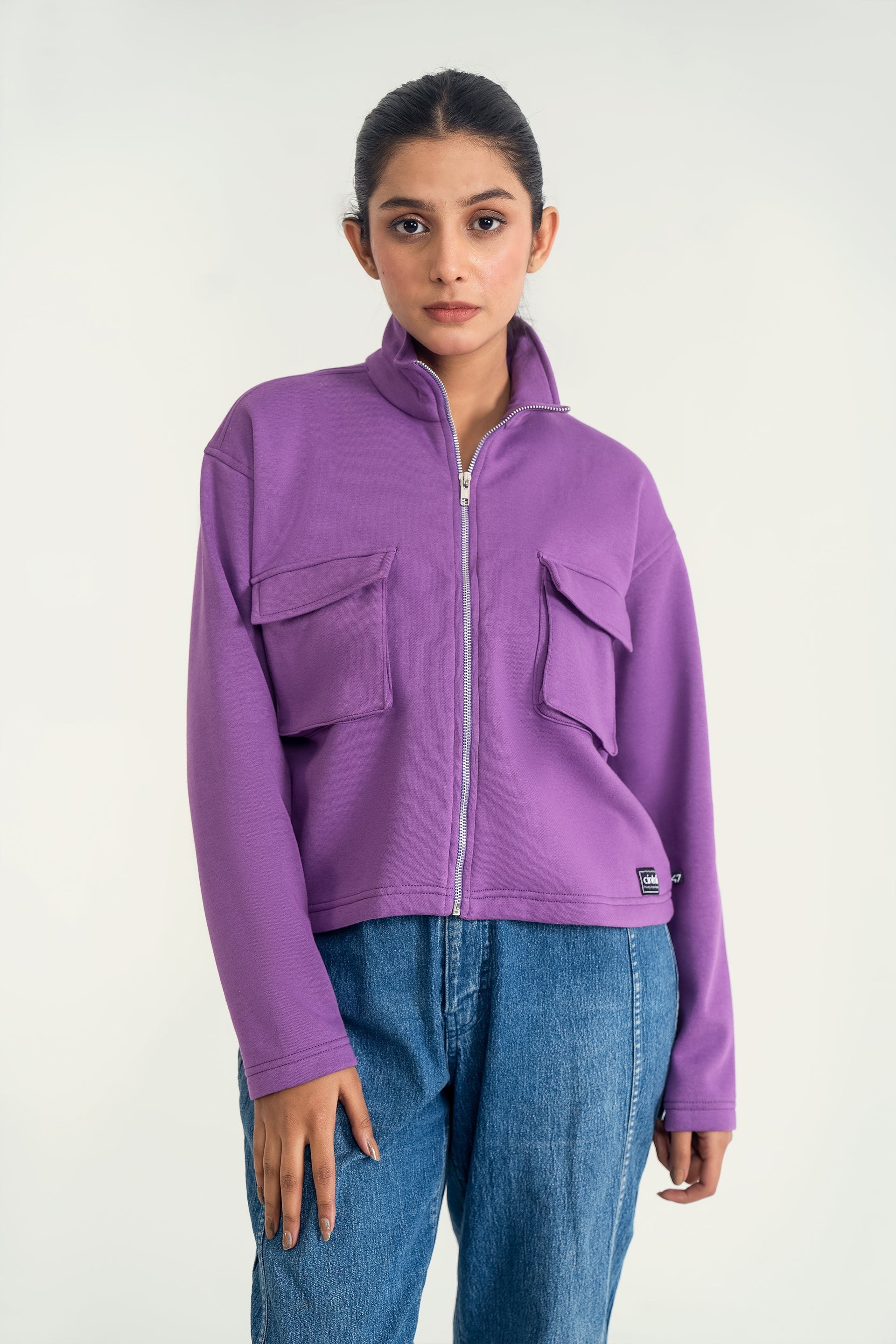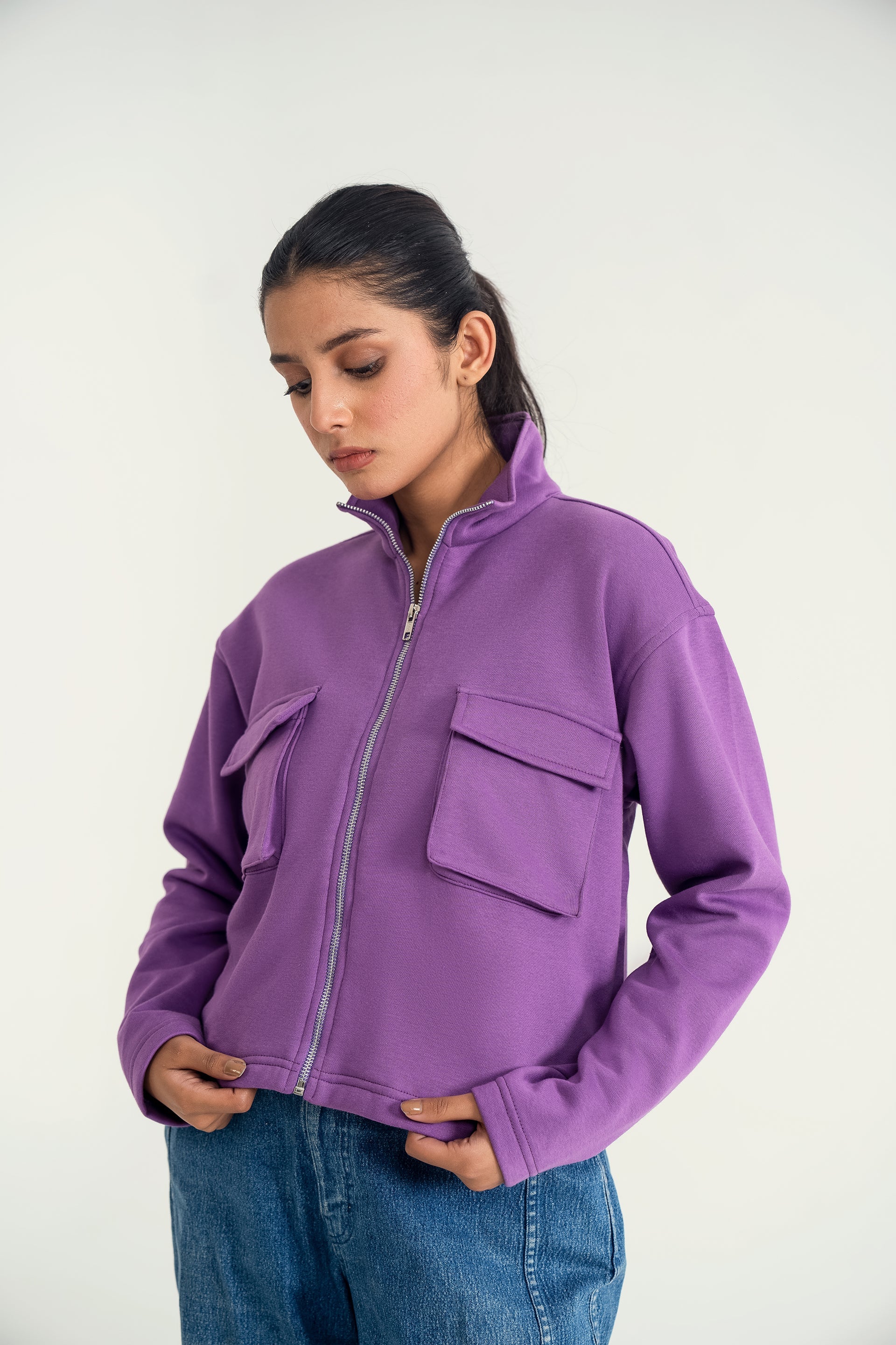 Description: This women's zipper sweatshirt features a relaxed fit and soft 100% cotton fleece for all-day comfort. With flap patch pockets, it's a stylish and practical choice for everyday layering.