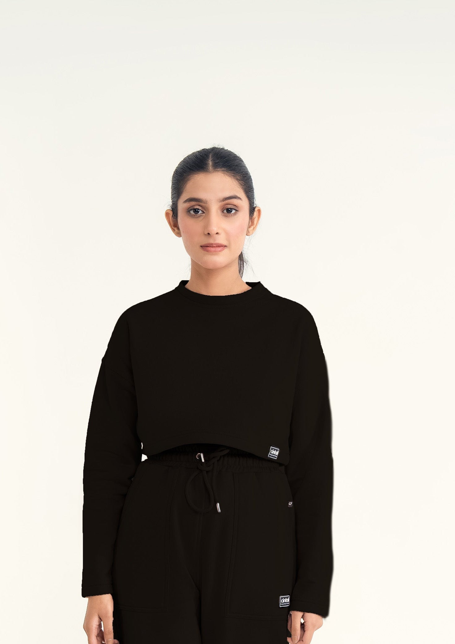 Description: This cozy cropped fleece sweatshirt features dropped shoulders for a relaxed, trendy fit. Perfect for lounging or casual outings, it pairs effortlessly with high-waist jeans or sweatpants.