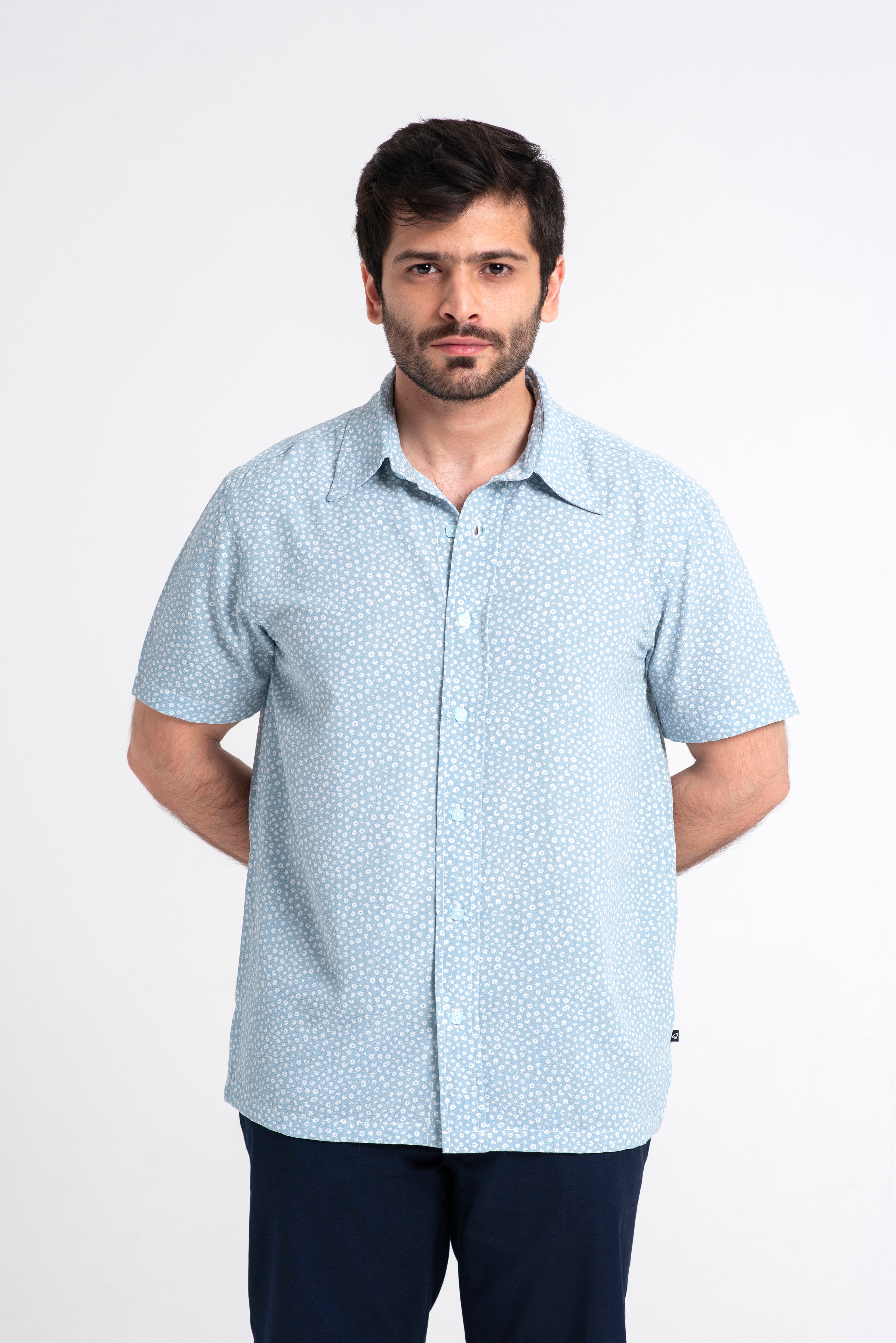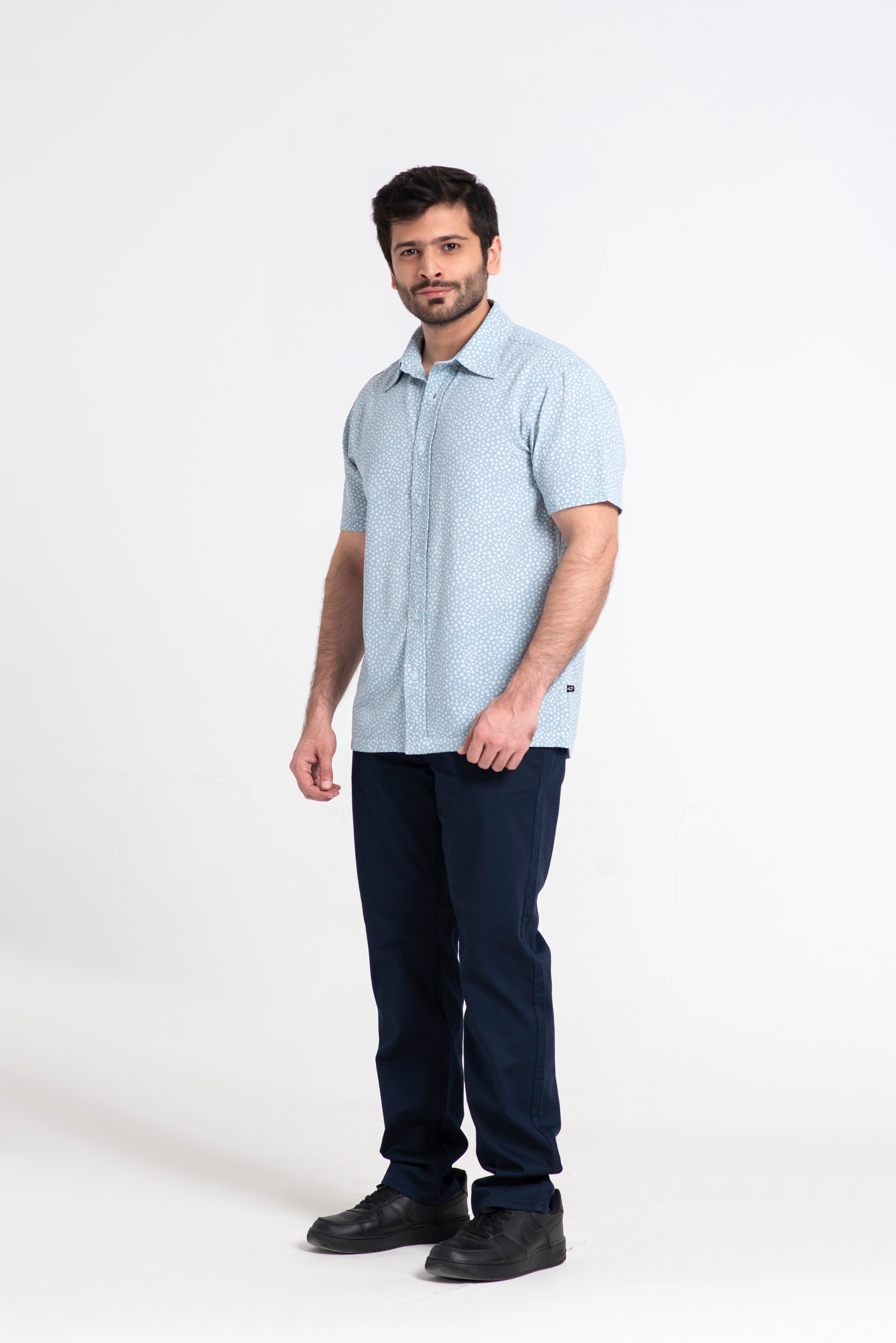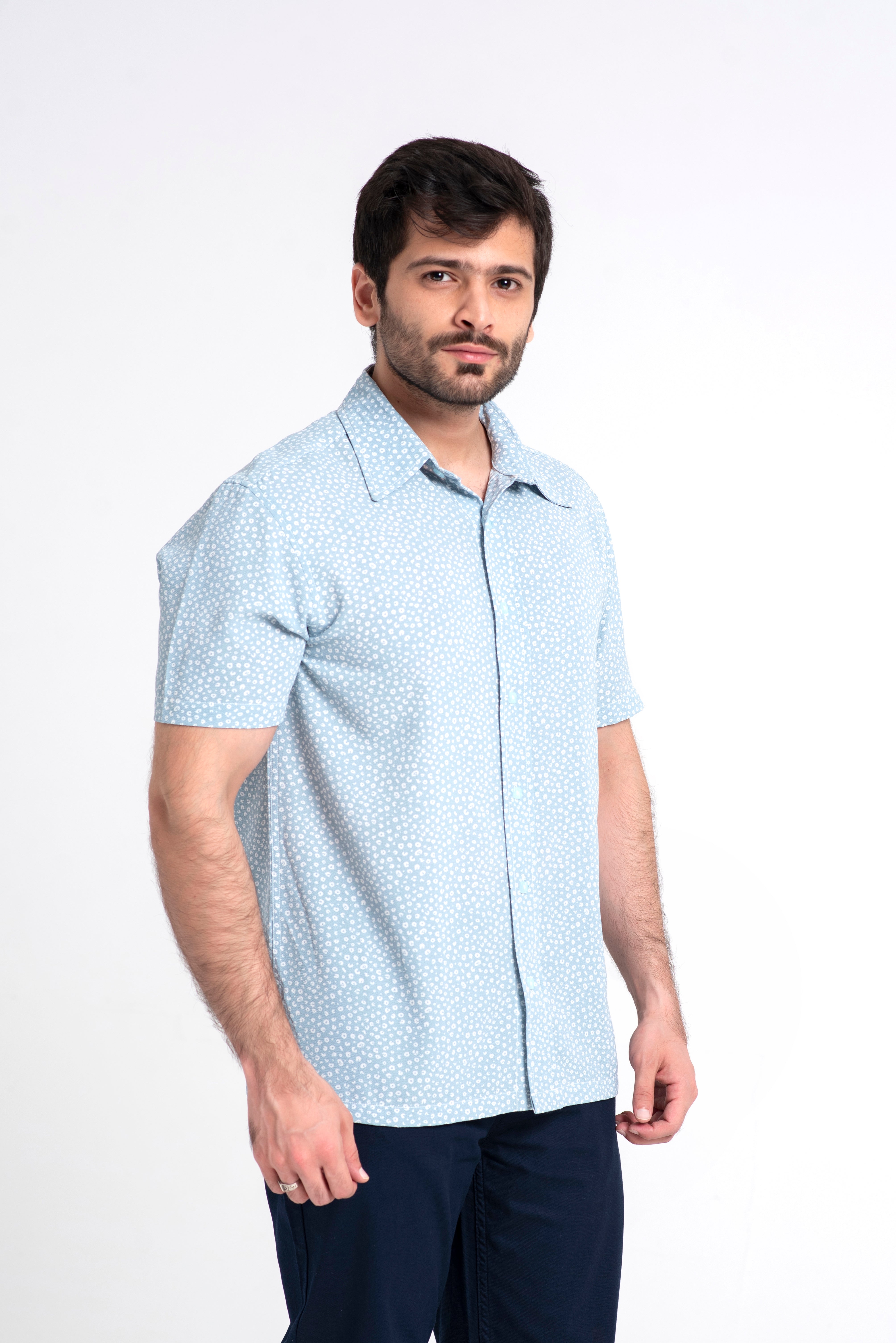 Description: Make a subtle statement with this blue printed shirt, featuring a clean dotted pattern that adds character without overpowering. Crafted from soft, breathable fabric, it's perfect for both casual and smart occasions.